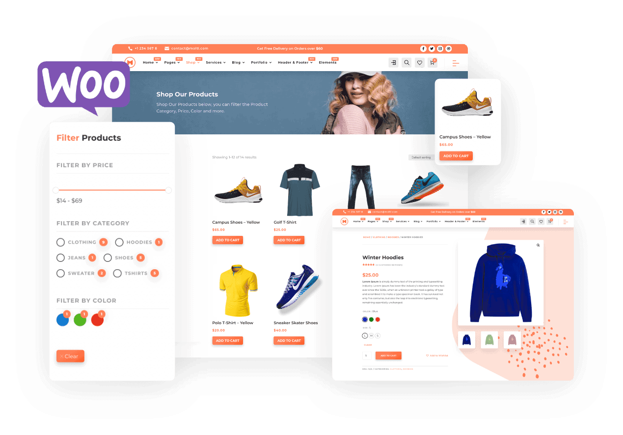The Molti Ecommerce provides you many stunning Design for your next Ecommerce site/Store with WooCommerce. With many hover effects, Stunning Functionalities and never before seen features will make you say WOW!